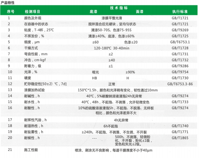 該產(chǎn)品由短油醇酸樹(shù)脂、熱固型丙烯酸樹(shù)脂.聚酯樹(shù)脂、氨基樹(shù)際、耐曬顏填料,高分子助劑及有機(jī)溶劑通過(guò)精心設(shè)計(jì)而成的單組份烘干型涂料。